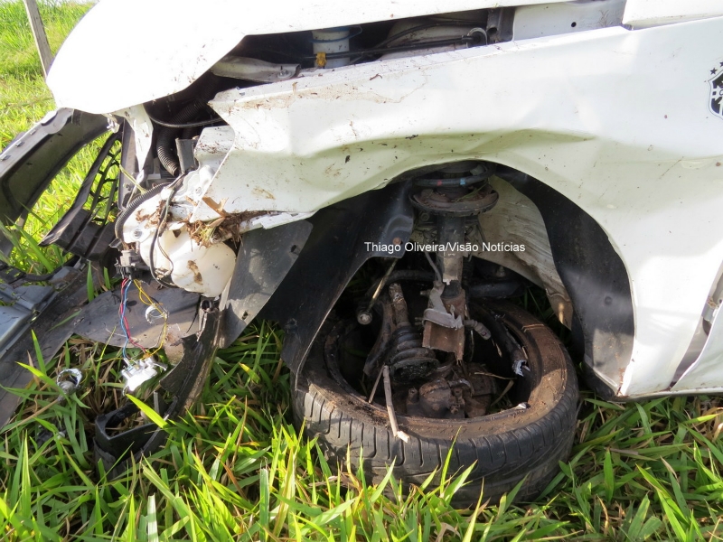 Com a violência do impacto, todos os airbags do Voyage estouraram. Duas cadeirinhas infantis que estavam no banco de trás ficaram destruídas. Felizmente não havia nenhuma criança dentro do carro no momento do acidente.