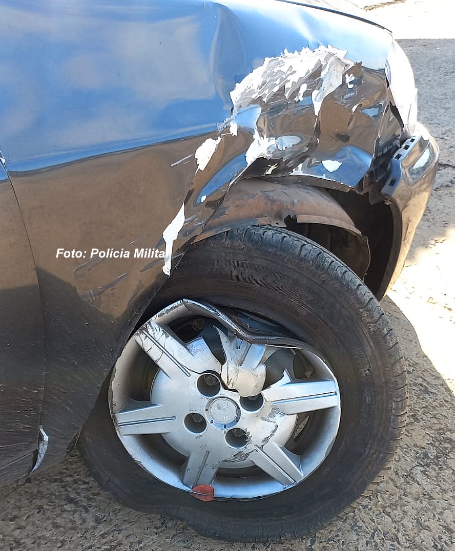 Após receber uma solicitação via 190 para atendimento de ocorrência de aciente de trânsito na avenida Santo Antônio, em que um veículo havia se chocado contra um carro que estava regularmente estacionado, uma equipe esteve no local do acidente.