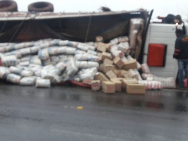 O carro, com placas de São Manuel, ficou totalmente destruído. Já o caminhão tombou na pista e parte da carga, de sacos e caixas de arroz, ficou na pista. O motorista do caminhão teve ferimentos leves e foi encaminhado para o Pronto-Socorro de São Manuel.