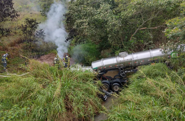 Parte da soda cáustica que era transportada nos tanques vazou para o manancial. O motorista morreu no local. Parte do bitrem ficou “enterrada” em um dos barrancos.