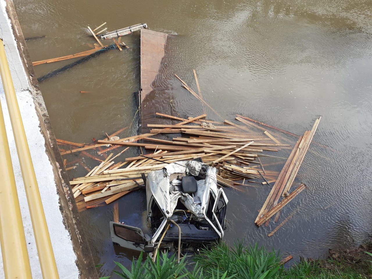A equipe do Corpo de Bombeiros de Tupã foi acionada para atendimento do acidente e, no local, apurou-se que o motorista do caminhão com placas de Tupa e carregado com madeira que transitava no pela vicinal Tupã/Quatá, perdeu o controle da direção caindo da ponte no interior do rio.