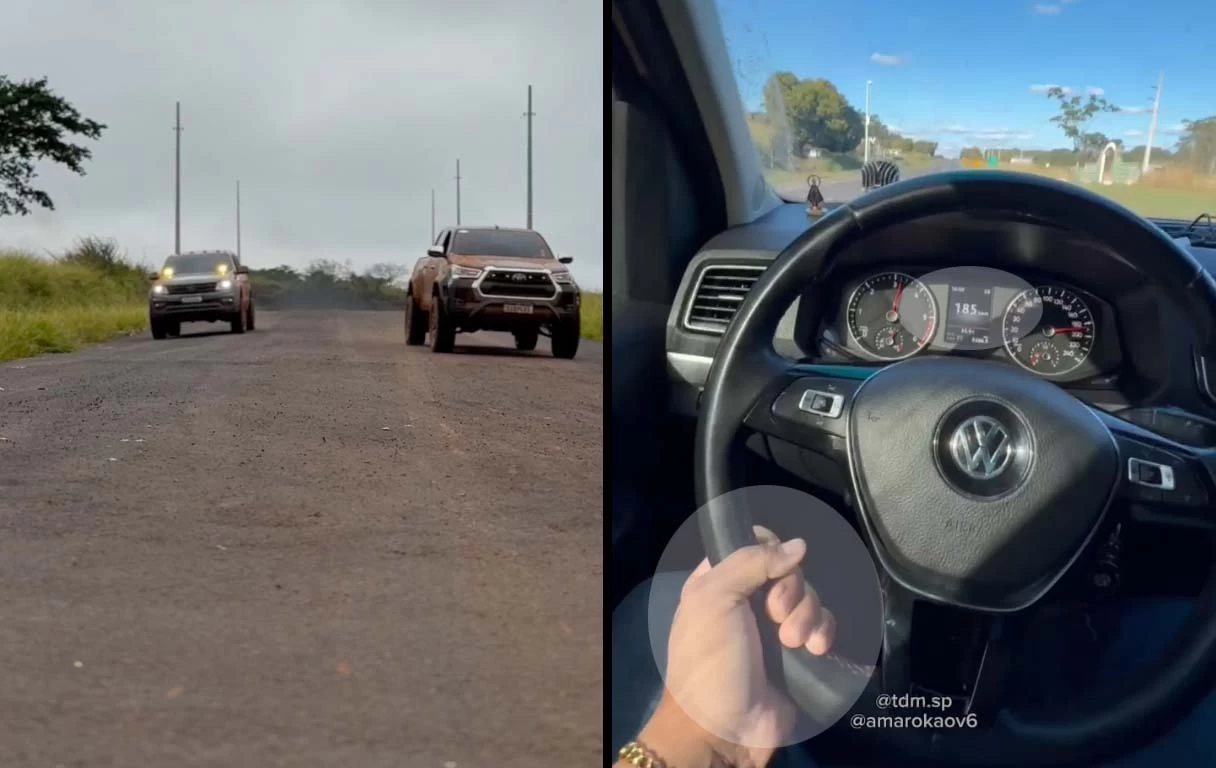 O vídeo começou a circular pelas redes sociais há cerca de dois dias. O Visão Notícias teve acesso ao primeiro trecho, em que os dois veículos se "apresentam", saindo em alta velocidade lado a lado, com a pessoa que está filmando no meio, uma característica básica do começo do racha. O local que não seria a rodovia.