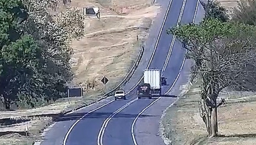Nas imagens, é possível ver o momento em que o veículo avança para a faixa do sentido contrário em um trecho de faixa contínua, tentando ultrapassar outros dois veículos. No mesmo instante, um automóvel branco vinha no sentido oposto, percebe a manobra perigosa e reduz a velocidade, conseguindo evitar a colisão por pouco.