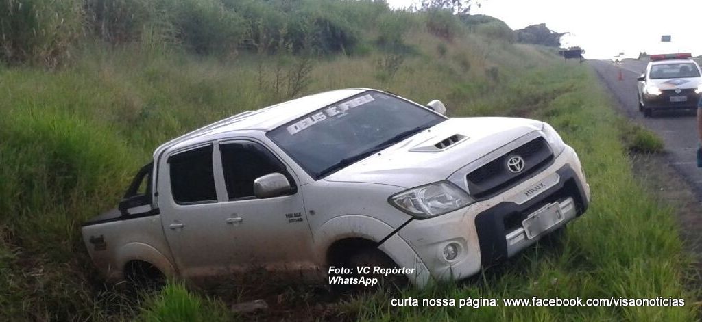 O condutor de uma caminhonete HILUX, placas de São Carlos, perdeu o controle e derrapou além do acostamento. Apesar do susto, nenhum dos ocupantes saiu ferido.