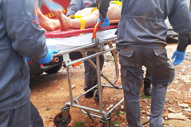 O acidente ocorreu no final desta manhã e mobilizou três equipes (Unidade de Resgate, um caminhão Auto Tanque, e uma caminhonete com equipamentos). Um bombeiro desceu até o fundo do buraco iniciando os primeiros socorros à vítima, que estava com nível de consciência bem baixo.