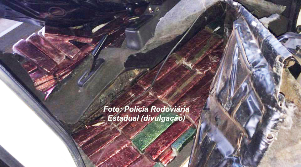 Por isso, foi feita uma inspeção no veículo, constatando que havia um fundo falso no assoalho, onde foram encontrados os tabletes de maconha.