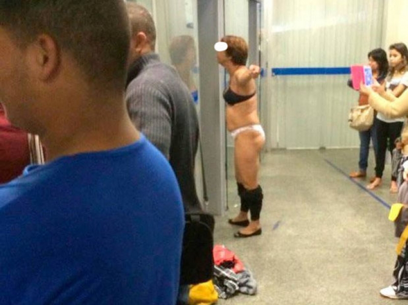 "Tirei tudo que tinha na bolsa e mesmo assim apitou. Falei pra ele [segurança] que não era nenhuma bandida. Perguntei se ia ter que tirar a roupa e ele falou que, se eu quisesse entrar, ia ter que tirar até não apitar mais", relatou a senhora.