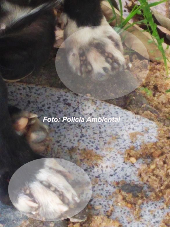 contra três cães. A constatação foi feita pela Polícia Ambiental que encaminhou os animais para tratamento em uma clínica veterinária.