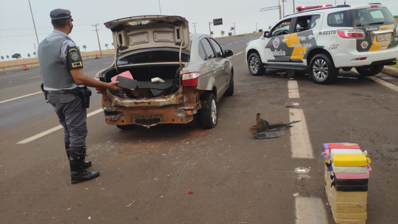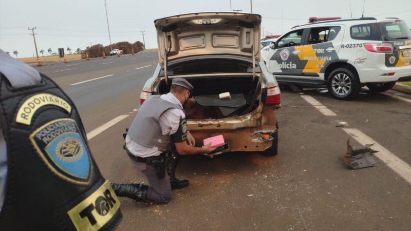 A mulher trafegava pelo quilômetro 414 da rodovia Raposo Tavares, município de Palmital, com o veículo Fiat Siena, placas de Mato Grosso do Sul, quando foi abordada pelos policiais transportando em um fundo falso do porta-malas, 55 tabletes de cocaína.