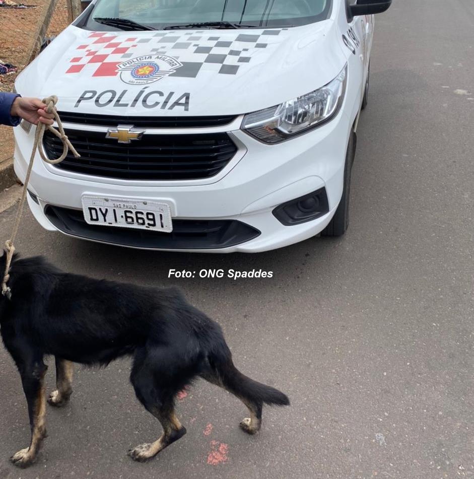 Após receberem denúncias de que o animal, da raça pastor alemão, representantes da ONG Spaddes de Proteção Animal acionaram a Polícia Militar e foram até ao local, no bairro Marina Moretti, na zona Norte da cidade.