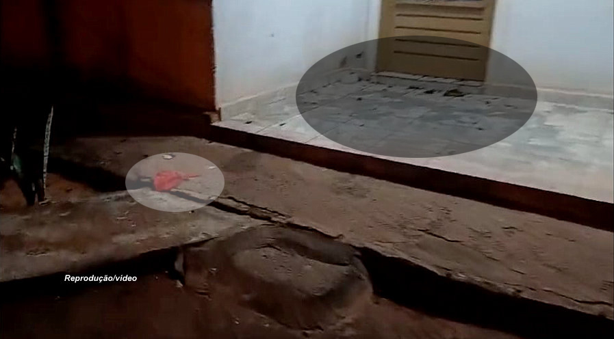 Estilhaços das duas garrafas e o pavio na varanda da casa.