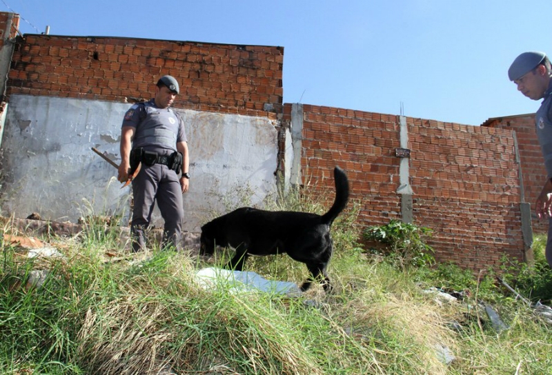 Com apoio do Canil, os policiais militares tentam encontrar mais drogas, já que na casa dela haviam cerca de o restante da droga, inclusive 14 mil pinos vazios que ainda seriam embalados para venda, bem como uma balança de precisão.