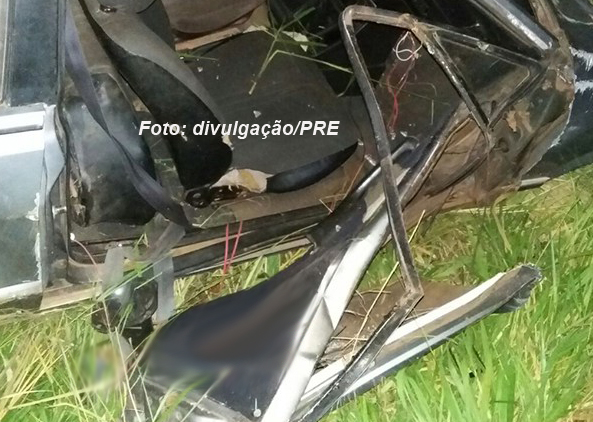 A passageira foi atirada para fora do carro. Tudo indica que não usava cinto de segurança.
