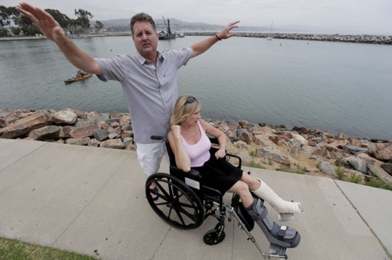 Uma mulher sofreu fraturas nos dois tornozelos após um golfinho pular sobre um barco durante um passeio no sul da Califórnia, nos Estados Unidos.