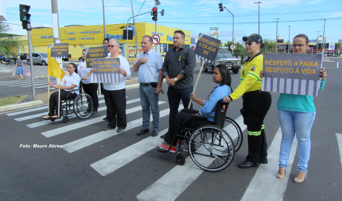 Parceiros também mostraram aos motoristas cartazes com informações como “Respeite a Faixa, respeite a vida”, “reduzimos o número de atropelamentos em Marília”, “Mas isso não é motivo de comemoração” e etc.