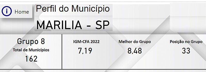 Colocação de Marília - Além da colocação nacional, Marília aparece na 33ª colocação no seu "grupo" na qual estão 162 municípios. O IGM-CFA da cidade atingiu 7,19, sendo que a melhor do grupo (Jundiaí) atingiu 8,48. Assis, que ocupa a quarta colocação com 7,94.