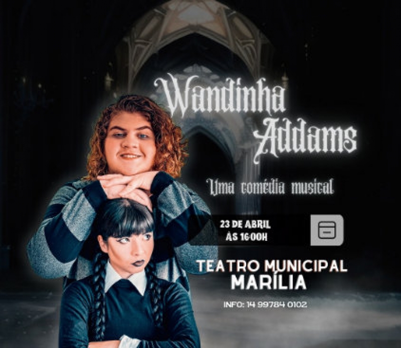 Marilia, recebe neste domingo dia 23 de abril as 16 horas no Teatro Municipal Waldir Silveira Mello o espetáculo musical: Wandinha Addams. A peça é uma comédia que promete “aterrorizar” toda a família com muito bom humor.