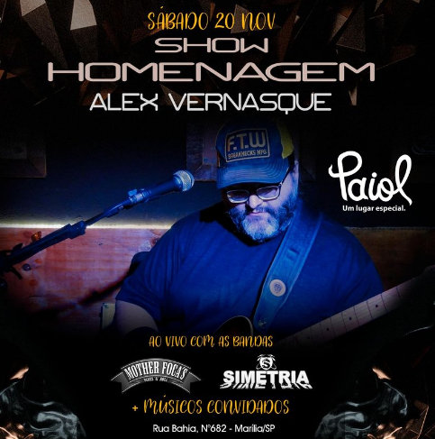 As bandas Mother Foca’s e Simetria, das quais Alex fazia parte, farão um show de homenagem ao cantor no Paiol que fica na Rua Bahia, 682.