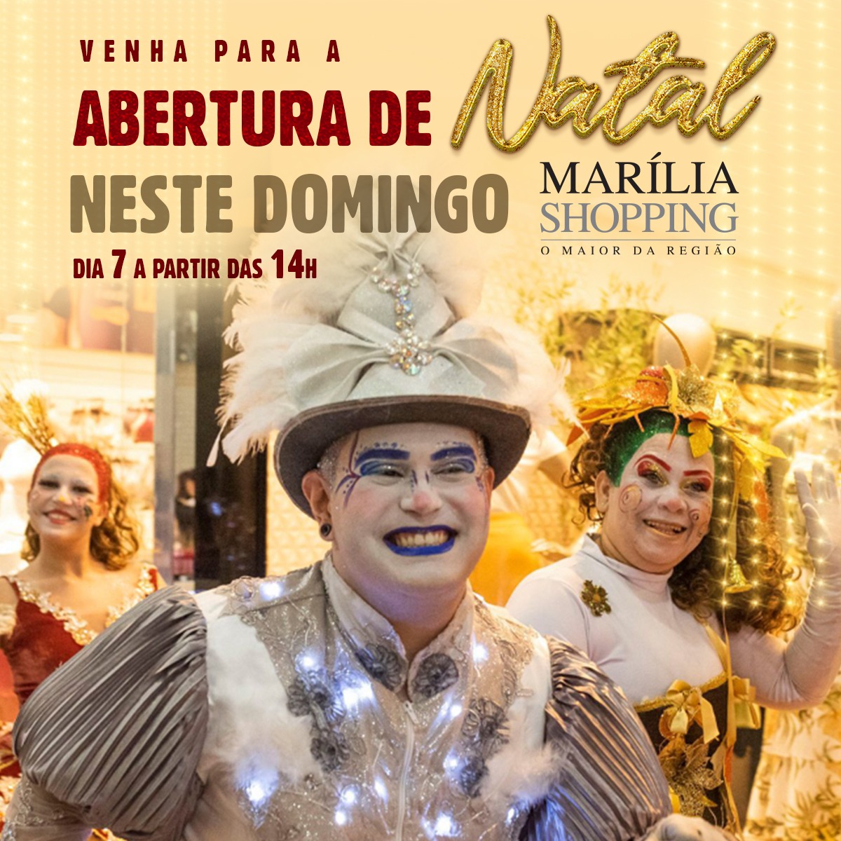 Com essa programação, o Marília Shopping que se destaca todo ano por sua decoração, faz um convite para que seus visitantes venham viver momentos agradáveis e dar boas-vindas ao Natal em uma tarde inesquecível de sonhos e fantasia.