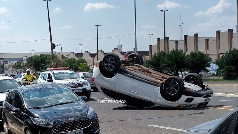 Um automóvel acabou batendo em outros dois veículos estacionados e, em seguida, capotou. Apesar dos estragos e do susto, ninguém ficou ferido. As causas da colisão serão apuradas pela Polícia Civil.