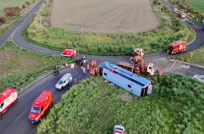 Um ônibus com 50 passageiros tombou, nesta terça-feira (8), na rodovia MG-223, entre Araguari e Tupaciguara, em Minas Gerais. Segundo informações do Corpo de Bombeiros, pelo menos 11 pessoas morreram e 36 pessoas ficaram feridas.