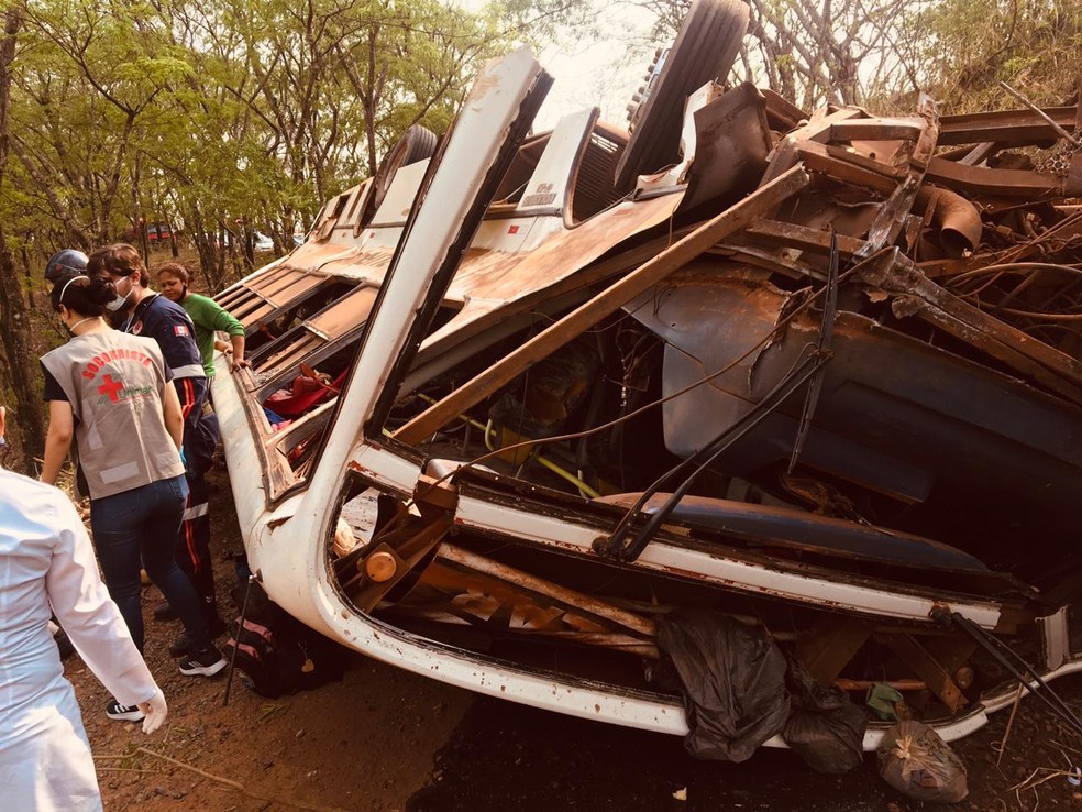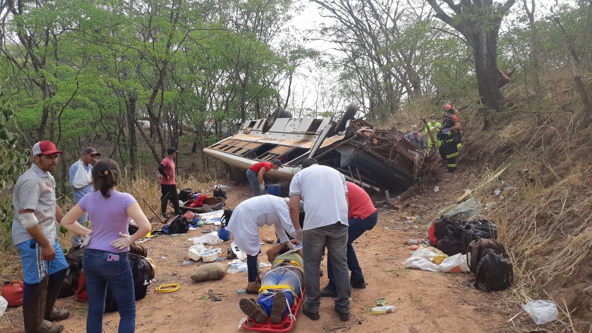 Mas, fotos recebidas pelo Visão Notícias mostram que o veículo ficou na estrada, de rodas para cima. Pelo menos dois passageiros ficaram presos nas ferragens. Outros sofreram ferimentos e também fraturas.