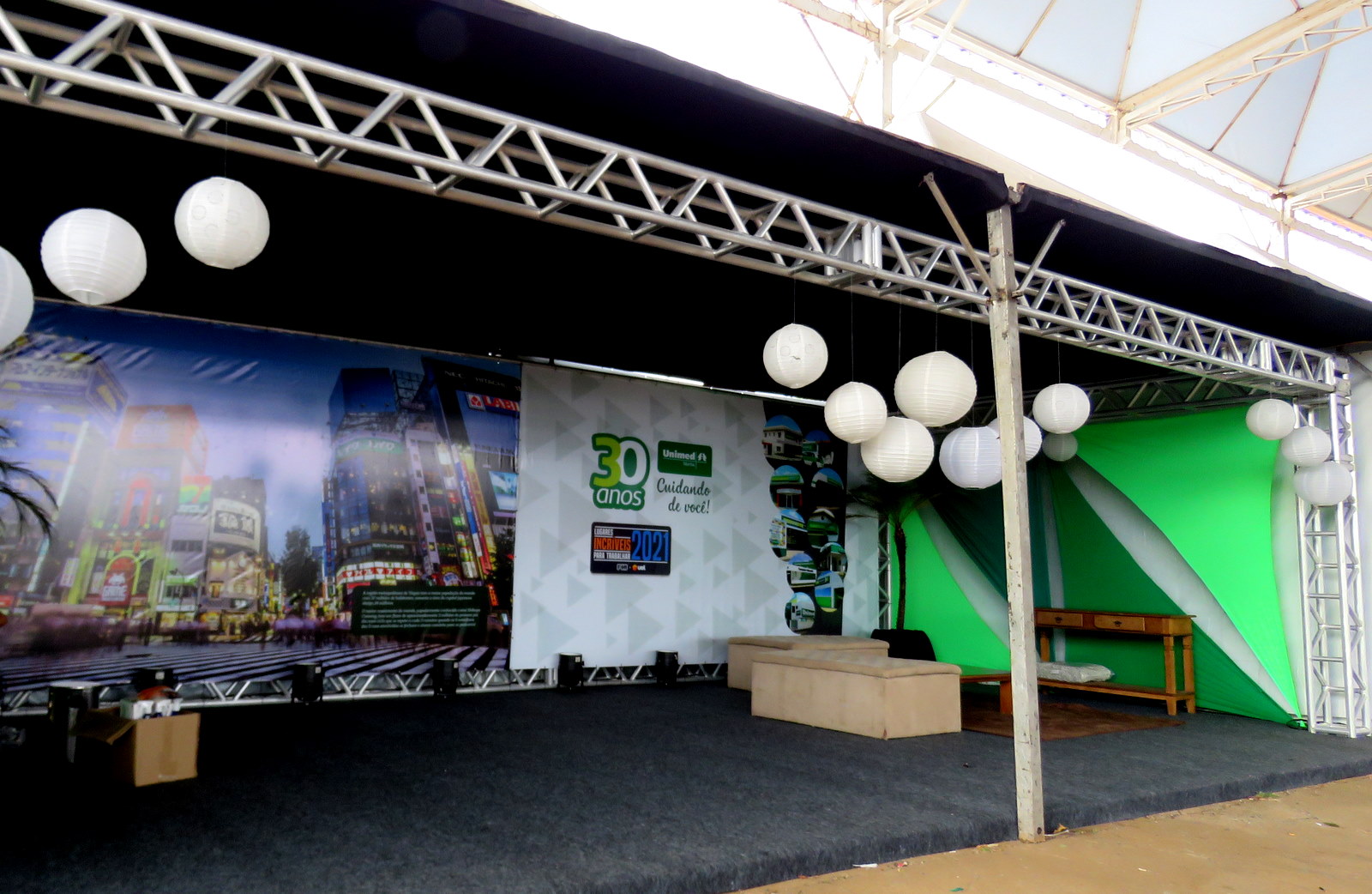 Estandes estão sendo montados, como da Unimed Marília.