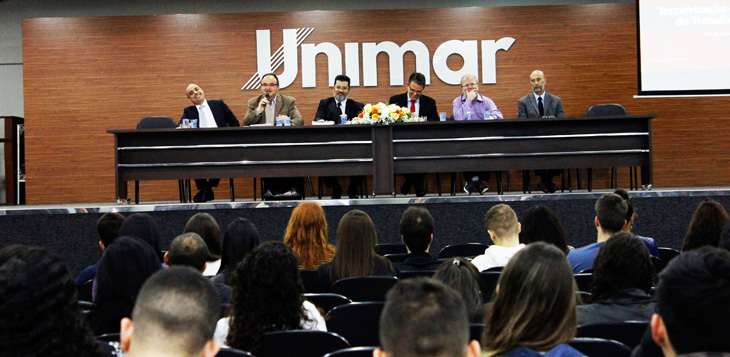 Também docente da Universidade, o mestre em Empreendimentos Econômicos Jether Gomes Aliseda, falou sobre o enquadramento sindical das empresas de trabalho temporário. O advogado e mestrando em direito na Unimar, Etinon Ramos de Oliveira Júnior ministrou o esvaziamento do debate sobre terceirização.