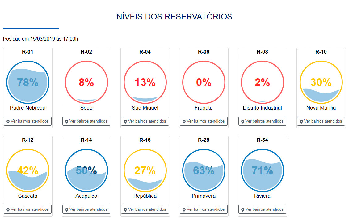Veja o nível dos reservatórios em Marília no final da tarde: