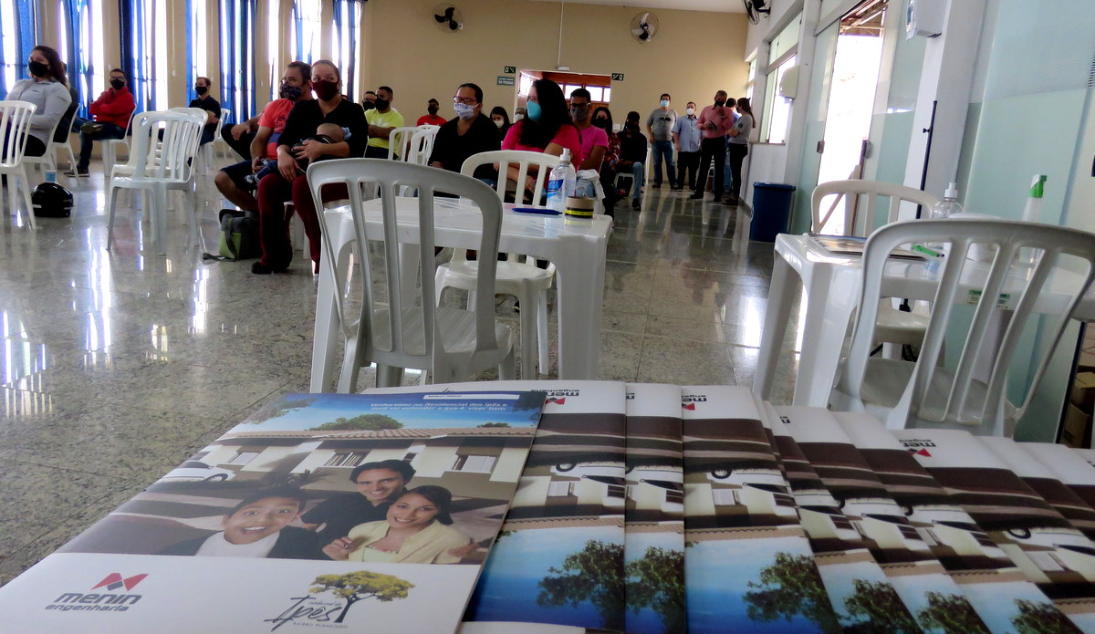 Lideranças da cidade e representantes da Menin Engenharia durante a entrega dos contratos.