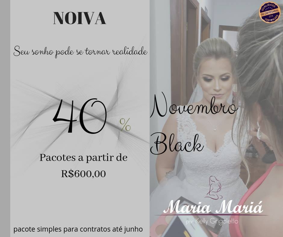 Trata-se da promoção "Novembro Black", que também marca o início das comemorações dos 13 anos do Maria Mariá, que serão completados em dezembro. "Aquele cabelo e aquela maquiagem que marcarão na lembrança de todos seus amigos e pessoas que você ama", afirma Kelly Grigoletto.