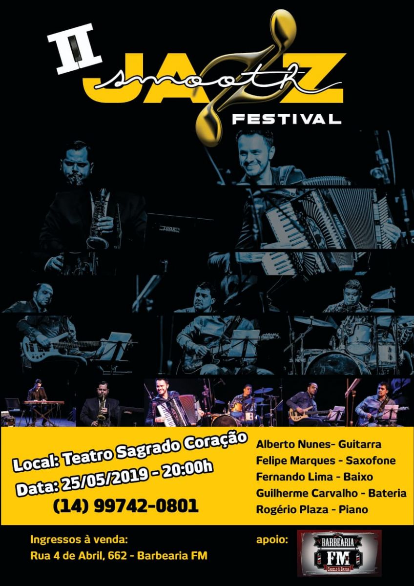 “Estamos preparando uma noite especial, novamente dedicada ao smouth jazz e que, certamente, agradará quem buscar por esta experiência”, concluiu o saxofonista Felipe Marques. Mais informações do II Smouth Jazz Festival podem ser obtidas através do telefone (14) 99742-0801.