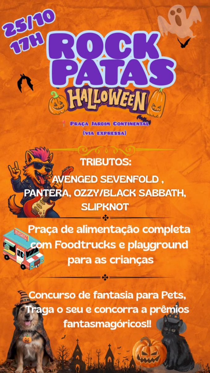Com objetivo de arrecadar ração para animais resgatados das ruas e maus tratos, será realizada neste sábado, em Marília, a quarta edição do Rock Patas. Com o tema Halloween, vai ocorrer na praça do Jardim Continental, na zona sul da cidade, a partir das 17h.