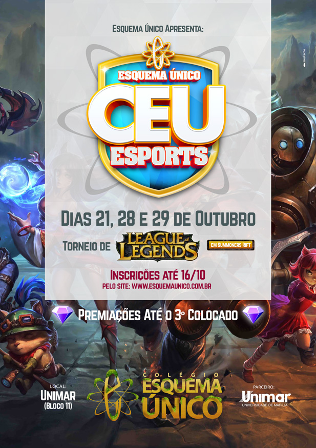 O novo curso da Universidade e Colégio preparam-se para desenvolver a partir deste final de semana o Torneio Esquema Único de LOL. League of Legends, mais conhecido como LOL, é um jogo online competitivo que mistura a velocidade e a intensidade de um Real-Time Strategy(RTS) com elementos de Role-Playing Game (RPG). Duas equipes de poderosos campeões, cada um com design e estilo único, lutam em diversos campos de batalha e modos de jogo.