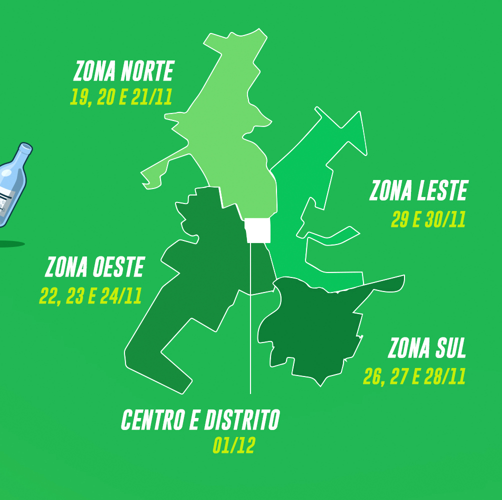 A expectativa é remover cerca de 800 toneladas. Nas zonas norte, sul e o oeste serão três dias de coleta (cada região) e na zona leste os caminhões passarão por dois dias.