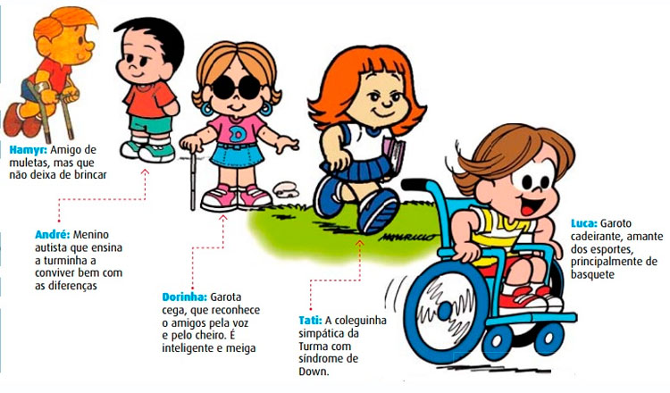 Além de Edu, a Mauricio de Sousa Produções já criou outros personagens com algum tipo de deficiência. A Dorinha, que anda acompanhada de seu fiel amigo canino por ela ser deficiente visual. Há ainda um deficiente auditivo, um cadeirante e uma menina com síndrome de Down.