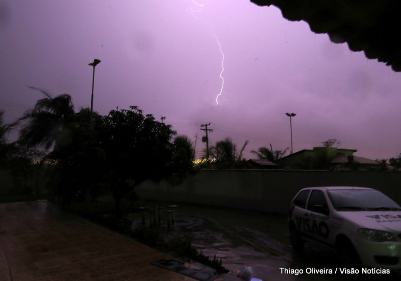 Isso tudo foi resultado de mais um temporal que chegou de maneira rápida à cidade. De madrugada, já havia sido registrado um verdadeiro "festival" de raios e relâmpagos, iluminando o ceu.