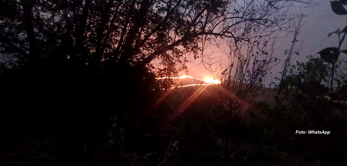 Depois de muito esforço dos próprios moradores, o fogo se concentrava nesta mais afastado das casas no bairro Figueirinha.