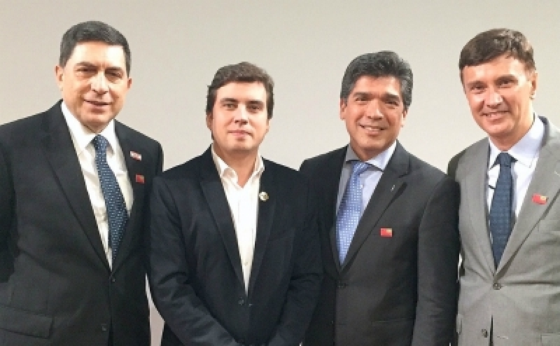 Prefeito Vinicius com os presidentes da Coca-Coca Xiemar Zarazúa, da Nissan do Brasil François Dossa e do Bradesco Luiz Carlos Trabuco Cappi.