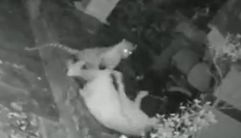 Uma câmera de segurança filmou o momento em que a onça invade o quintal. Logo depois, a idosa chega à varanda para se sentar, quando é atacada. Ela usou sua própria bengala para se proteger e afugentar o felino. Segundos após a onça fugir, familiares da idosa chegaram para socorrê-la. Como estava à noite e o local estava escuro, a senhora não conseguiu avistar o animal à espreita.