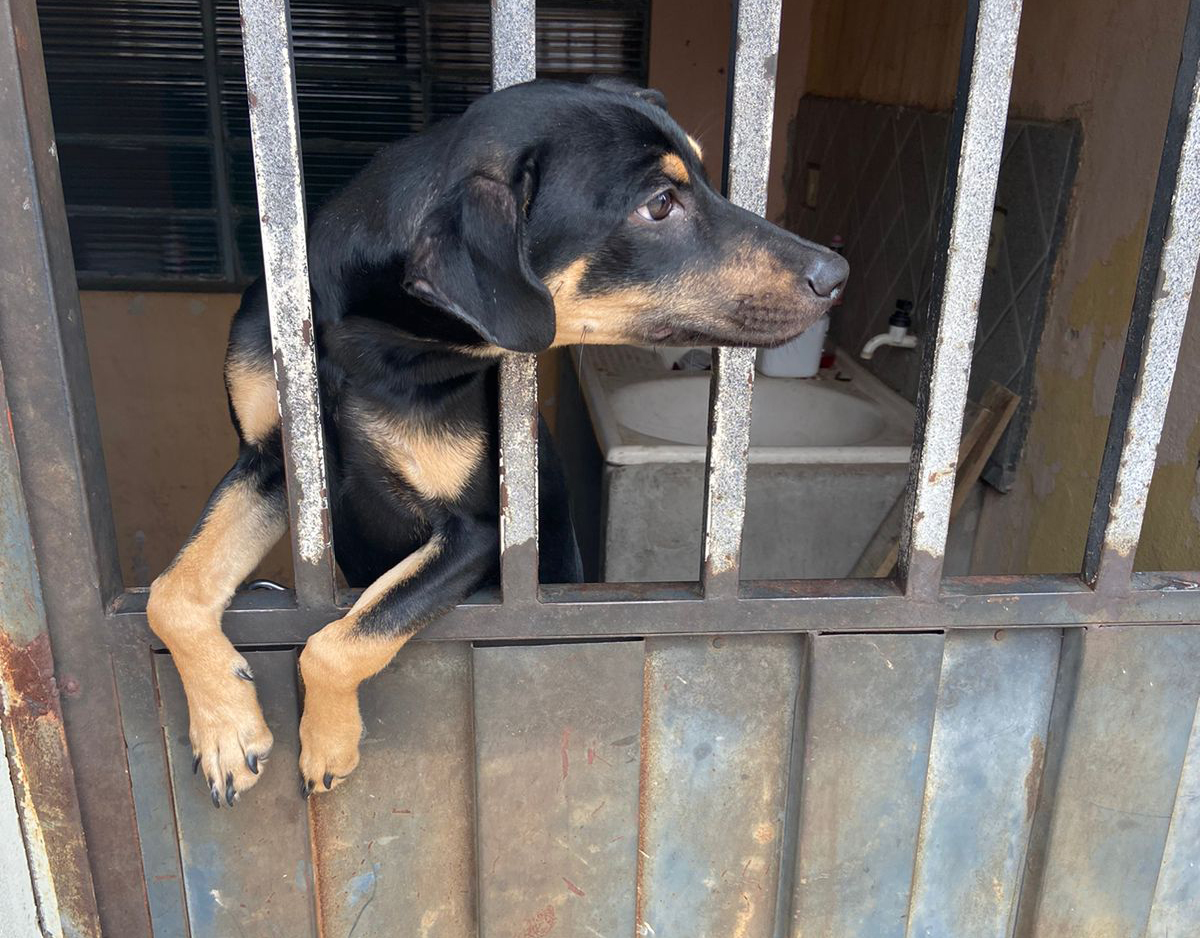 Tratava-se de uma cachorrinha de pelagem preta, sem raça definida. Ela estava sendo alimentada por vizinhos e vivendo em local totalmente insalubre.