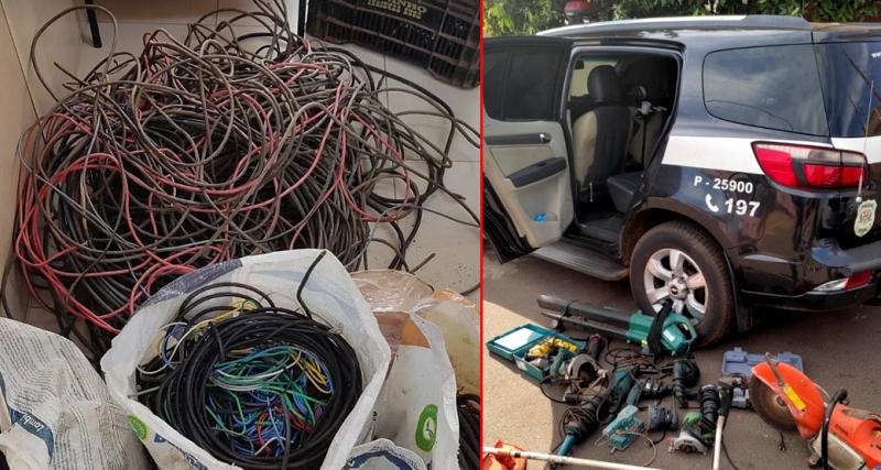 Além da fiação, os policiais também apreenderam metais leves e pesados de origem que será apurada, ferramentas, maquinários, dezenas de baterias de carro, aparelhos eletrônicos, um computador e 8 mil em dinheiro.