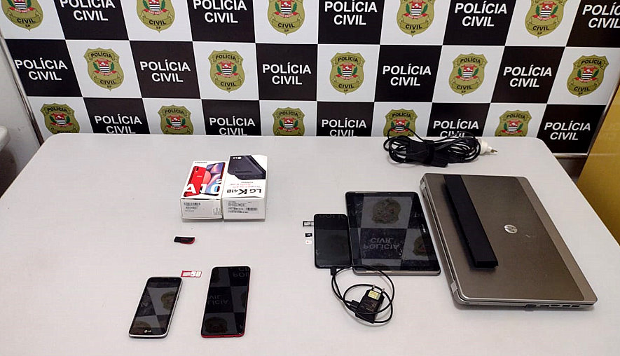 Foram apreendidos um notebook, um aparelho celular e um tablet.