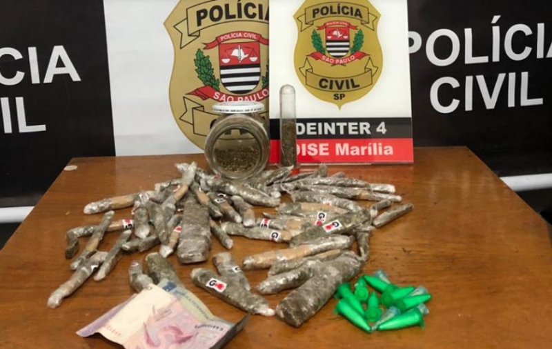 Com um adolescente de 17 anos os policiais encontraram 58 porções de maconha. Ele foi apreendido e permaneceu à disposição da Vara da Infância e Juventude.
