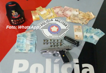 Na revista pessoal, os policiais militares encontraram a pistola (com 16 munições intactas) na cintura do motorista. Foram apreendidos também aproximadamente R$ 2.500,00 em dinheiro trocado. Como o condutor estava com a habilitação vencida, o veículo foi apreendido.