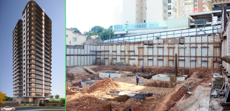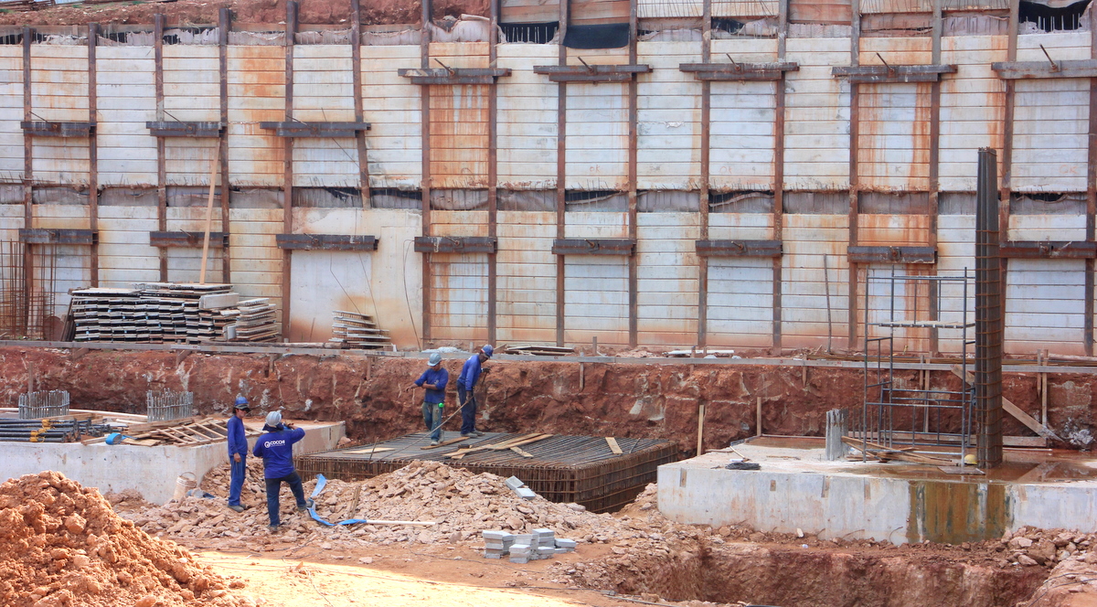 Em estágio acelerado, término da fundação deve dar início da colocação das lajes dos primeiros pavimentos.