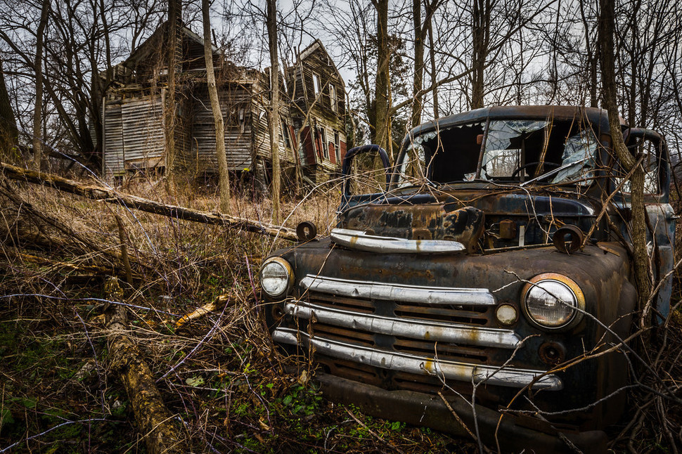 Esta fazenda abandonada no estado de Nova York também funciona como um cemitério de carros antigos, que aos poucos vão sendo tomados pela natureza.