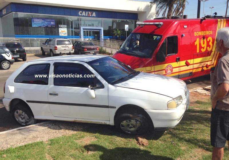 Além dos estragos no veículo, ficou ainda mais assustado ao ver a chegada de quatro viaturas do Corpo de Bombeiros, incluindo Resgate e duas motos (MOBs). Os bombeiros aguardaram a chegada da Polícia Militar e do guinho já que o local é de grande movimento e poderia causar outro acidente.