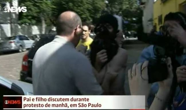 As imagens da discussão entre o pai e o filho foram registradas por uma câmera da TV Globo: "Você vai ter o seu direito quando trabalhar e ganhar o seu dinheiro, tá?", disse o pai, enquanto o filho reclamava por melhorias na saúde e educação do país: "Deixa eu protestar. Eu não quero isso. Esse governo é errado", retrucou.