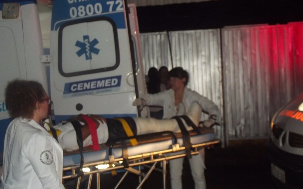Uma das vítimas é socorrida após o acidente (Foto: Tél Patané/Catanduva Show)